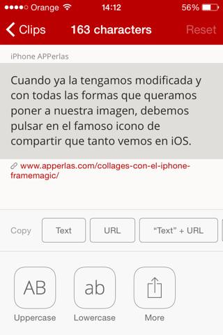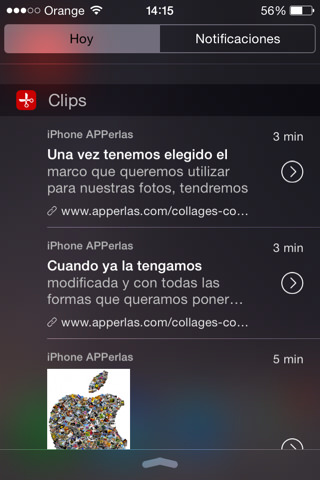 El funcionamiento del Widget y del teclado es maravilloso. De verdad que nunca habíamos pensado que las nuevas características de iOS 8nos pudiesen aportar herramientas tan buenas como la imprescindible CLIPS.